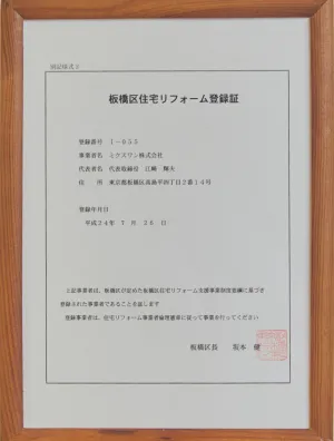 ミクスワン株式会社は、板橋区リフォーム事業者登録事業の登録事業者として地域に根ざしたリフォームに取り組んでいます。